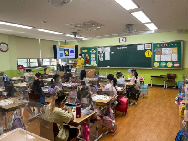 초등학교 아이들이 너무 산만하여 수업진행에 큰 어려움이 있을까 걱정이 있었지만, 반 담임선생님과 보조선생님의 도움으로 보다 수월하게 즐거운 수업을 이끌 수 있었습니다. 1,2교시를 진행하는 짧은 시간 동안에 전달하고자 했던 내용들을 모두 아이들에게 전달하고, 아이들은 전달받은 내용을 잘 흡수한 것 같아서 보람찬 수업이었습니다.