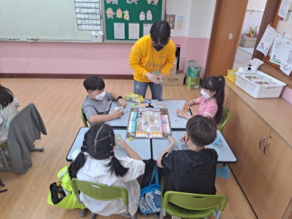 2교시: 금융 ZONE 게임을 진행하여 여러 금융기관(회사)을 통한 소득과 저축을 보드게임의 형식으로 접함으로써 아이들이 자연스레 1교시에 배웠던 내용을 떠올릴 수 있게 됨.