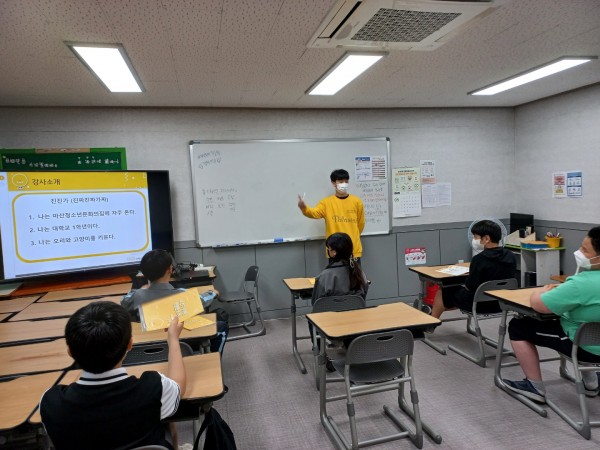 1교시 : 강사 소개와 아이스브레이킹을 위해 진짜진짜가짜 맞추기 게임을 한 후 교재 '내 친구 화폐, 현명한 소비' 및 PPT를 활용하여 소비의 개념과 현명한 소비를 위한 방법 수업을 진행했습니다. 수업 자료에 포함된 영상을 시청하고 영상 속 내용에 대해 학생들에게 질문하여 수업 참여를 유도했고 학생들이 생각하는 현명한 소비와 현명하지 않은 소비는 무엇인지 모든 학생의 의견을 들었습니다. 수업의 끝에서는 트럼프 카드를 활용한 경매 게임을 진행하고 학생들의 느낀 점을 정리하며 수업을 마쳤습니다.
