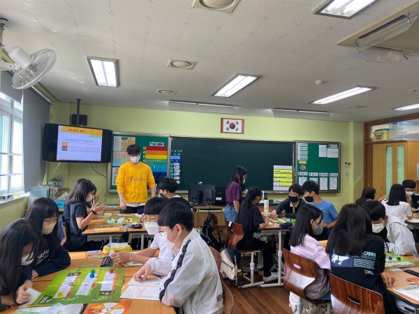 2교시는 김동현 단원이 진행했습니다. 1교시 수업 내용을 바탕으로 <돈을 벌어요 게임>과 <돌려라 저축판! 게임>을 진행했습니다.