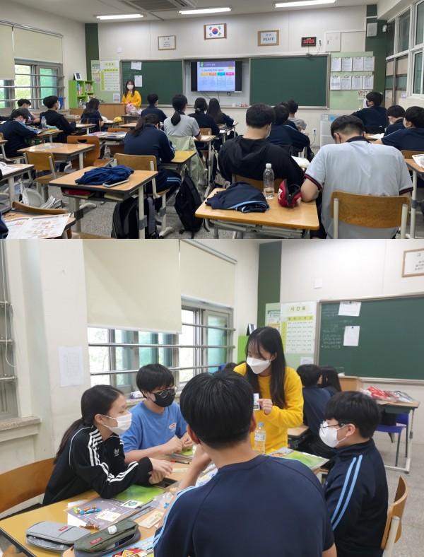 1교시: 백채영 단원이 수업을 진행하였습니다. 개정된 교과서에 맞추어 수업을 하였고 재무설계의 중요성, 합리적 소비와 보험의 필요성을 중점적으로 강의를 하였습니다. 특히 학생들의 이해도를 점검할 수 있도록 여러 퀴즈를 통해 흥미와 재미를 겸한 수업이었습니다.