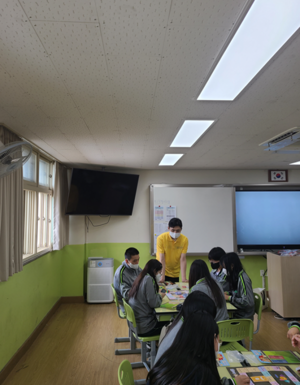 1교시에는 정하진 단원이 교재를 바탕으로 학습을 진행했습니다. 학생들과 적극적으로 소통하며 호응을 이끌어내고, 간식을 적절히 활용하여 학생들이 더욱 수업에 적극적으로 참여할 수 있도록 했습니다. 단원이 질문하는 내용에 대해 학생들이 적극적으로 잘 대답해주어 수업이 원활하게 진행될 수 있었습니다.
