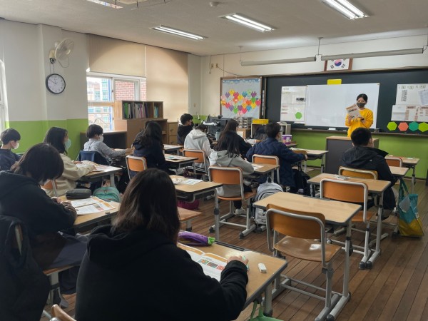 강사 및 교육에 대한 간단한 소개와 함께 교재의 제목과 학습목표를 학생들이 소리 내어 읽게끔 유도하면서 학습에 대한 전반적인 흥미를 유발했습니다. 페이지 별 주요 학습 내용과 관련한 영상을 우선적으로 보여주고, 영상이 종료된 뒤에는 내용에 대해 간단히 질문하며 학생들이 영상을 어떻게 감상하였는지 확인하고 금융기관의 역할과 종류, 투자 및 저축의 의미와 종류에 대해 설명했습니다. 교육 중간의 활동들은 학생들에게 일정 시간을 안배하여 직접 풀어볼 수 있게끔 하고 학생 전반이 활동을 완료하면 학생들에게 정답을 발표하게 하고 미리 준비한 상품을 전달했습니다.