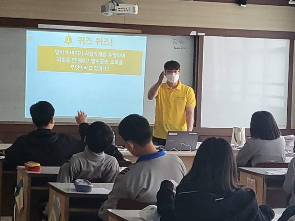 1교시에는 소득의 유형 네 가지(근로소득, 사업소득, 재산소득, 이전소득)과 더불어 불로소득에 대해 학습했습니다. 이후 벌어들인 소득에서 발생하는 의무인 세금의 정의와 종류를 함께 공부했습니다. 직접세와 간접세를 공부하고 세금이 활용되는 부분을 함께 학습했습니다. 그리고 신용점수제와 관리방안을 배운 뒤 예상되지 않는 위험들을 대비하기 위한 보험도 배웠습니다. 개인보험과 사회보험의 종류들을 배울 수 있었습니다. 적절한 상황에 맞는 보험상품을 들 수 있도록 저축성보험과 보장성보험의 장단점도 함께 살펴보았습니다.