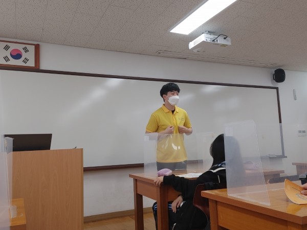 2교시 수업에서는 Q&A시간을 두어, 강사로서의 제가 아닌 대학생으로서의 저의 삶에 대해 공유하는 시간을 가졌습니다. 대학생으로서의 저 자신을 소개하고, 청소년에서 성인이 되었을 때 차이점 등에 대한 주제로 일상을 공유하는 시간을 가졌습니다. 40분이라는 다소 긴 시간이었지만 관심사에 대해 공유하여 학생들의 많은 참여와 관심을 이끌 수 있었던 시간이었습니다.