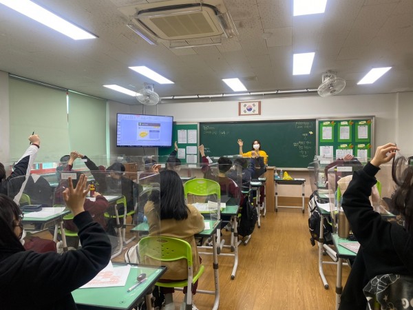 2교시- 오민정 단원이 강의 내용을 바탕으로 골든벨 퀴즈와 빙고 게임을 진행하였습니다. 빙고 게임은 아이들이 지우고 싶은 개념에 대한 설명을 친구들에게 성공하였을 경우 지울 수 있게 하여 아이들에게 다시 한 번 개념을 정리할 수 있도록 도와주는 시간을 가졌습니다.