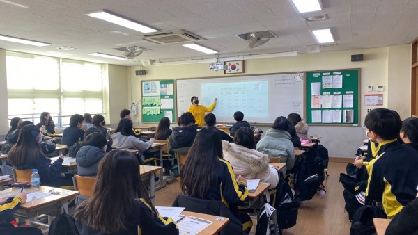 노윤정 단원이 진행했습니다. 생활 속에서의 금융에 의미에 대해 설명했고 학교 앞 편의점에서 물건을 구매하는 예시를 들며 이해하기 쉽게 설명했습니다. 금융회사의 6개 종류에 대해 설명하며 중간중간 퀴즈로 관심을 이끌었습니다. 저축과 투자의 차이점에 대해 장단점을 각각 자세히 설명했습니다. 탈무드의 명언에 대해 풀이하며 수업을 마쳤습니다.