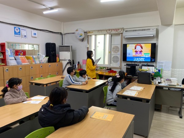 오후 3시부터 오후 4시 10분까지 진행했습니다. 저축, 주식, 돈이라는 단어를 알고 있는지 질문을 던지며 수업을 시작했습니다. 아이들은 자신이 저축을 얼마나 했는지, 돈으로는 어떤 걸 샀는지 잘 대답해주었습니다. 은행에 가면 노래를 듣고 함께 따라 불렀습니다. 그리고 돈의 기능은 무엇인지 배우고 퀴즈도 맞추었습니다. 저축의 필요성과 금융상품의 종류에 관해서도 배웠습니다. 쉬는 시간 없이 게임을 진행했습니다. 중간 중간 어려운 문제가 있을 때는 힌트를 주어 함께 맞출 수 있도록 했고, 다른 나라의 화폐 단위와 같은 깜짝 퀴즈도 내서 밝고 적극적인 분위기가 계속 유지될 수 있도록 했습니다.