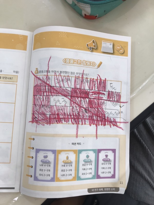 1교시에는 '내 친구 화폐, 현명한 소비' 교재와 ppt를 이용하여 수업을 진행하였습니다. 예시를 들어 학생들의 이해가 더 쉽도록 해주었습니다.