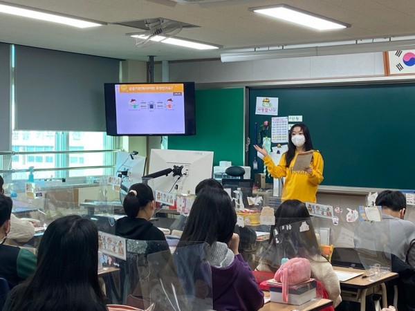 김수빈 단원이 진행하였습니다. 1교시의 수업을 바탕으로 하여 아이들의 이해를 돕기 위해 반복적으로 주식의 특징에 대해 설명하였고 투자를 결정할 때에는 신중하게 선택하도록 시간을 넉넉히 주었습니다. 아이들이 고민 하고 조금 소란스러워질때면 본인이 직접 결정하되 게임이 몰입 할 수 있도록 도왔습니다. 또한 결과를 공개할 때 또한 다시 한번 투자의 장점과 단점에 대해 설명하여 모든 아이들이 적극적으로 참여하게 살폈으며 투자를 할 때 여러가지 요인들을 고려해야 한다는 것을 알게 해주는 좋은 게임을 진행했습니다.