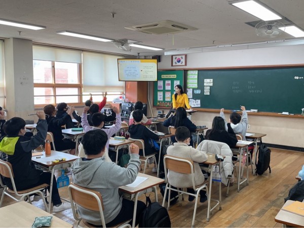 이푸른별이 단원이 진행했습니다. 수업 시작에 앞서 1교시 내용을 상기 시키며 투자에 대해 설명했습니다. 저축과 투자의 장단점에 대해 학생들의 발표를 듣고, 그 내용을 바탕으로 투자게임을 진행하였습니다. 또한, 투자의 이익과 위험성을 알기 위해 직접 체험해본다는 게임의 목적을 설명하였습니다. 투자 게임 이외에도 1교시 내용 확인 차 깜짝퀴즈 등으로 학생들의 적극적인 참여를 이끌어냈습니다. 투자게임 완료 후 이익을 얻은 친구와 원금을 잃은 친구들을 확인하며 다시 한번 투자의 이익과 위험성에 대해 설명하였습니다. 가장 높은 이익을