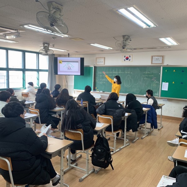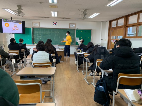 2교시 - 김세민 단원이 1교시 수업 내용을 바탕으로 줌앤아웃과 캐치마인드 대체 게임을 진행하여 학생들의 참여를 이끌었으며, 골든벨을 통해 쉽고 재미있게 배운 내용을 복습하였습니다.