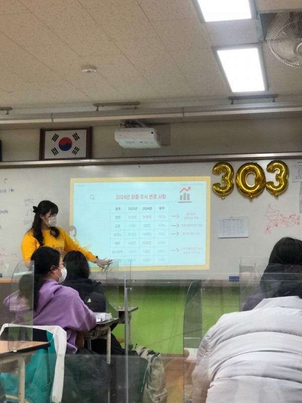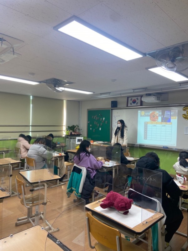 이한이 단원이 진행했습니다. 1교시에 배운 저축과 투자 내용을 바탕으로 투자게임을 진행했습니다. 금융을 아는 것이 중요한 이유는 다양한 금융 상품과 투자의 개념을 익히고 적용하는 것이 중요하다는 의미 하에 진행하였습니다. 6개의 기업에 적용할 수 있는 기사를 통해 아이들이 직접 호재와 악재를 판단하여 투자하도록 도왔습니다. 특히 분산 투자의 중요성을 일깨워주고 정보의 중요성을 몸소 깨닫게 해주는 시간이었습니다. 마지막으로 가장 이익을 많이 낸 학생 3명을 선정하여 투자 게임을 마무리 하였습니다.