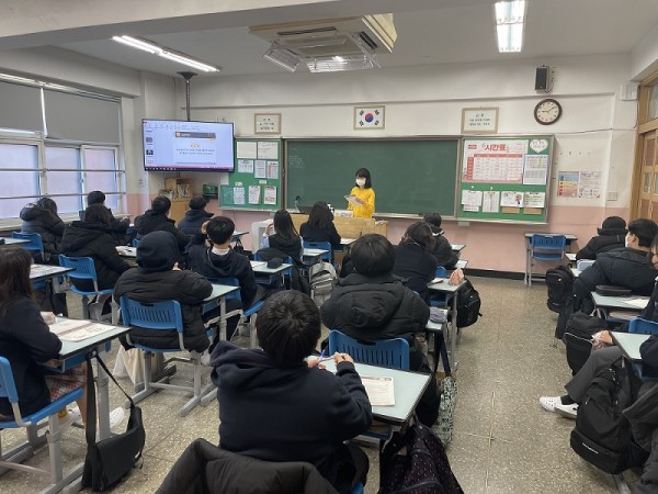 [서울]2021.12.13.한천중학교-김예인 페이지 정보 작성자 포동쓰 작성일21-12-17 14:40 조회11,288회 댓글0건 관련링크 이전글 다음글 목록 본문 1교시: 금융이 궁금해, 저축과 투자를 부탁해 수업을 김예인 단원이 진행하였습니다.2교시: 코로나로 인해 조별 활동은 자제하고, 교재에 나와있는 빙고 게임과 수업 내용 퀴즈를 진행하였습니다. 댓글목록 등록된 댓글이 없습니다. 이전글 다음글 목록