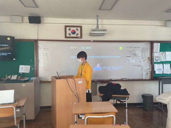 1교시 = 소득이 무엇인지, 금융기관과 우리나라 금융기관의 예시를 파악하고, 더 나은 삶을 위한 저축과 투자의 필요성을 수업했습니다. 실생활에서 학생들이 궁금해 할 사항들도 정리하여 수업하였습니다.