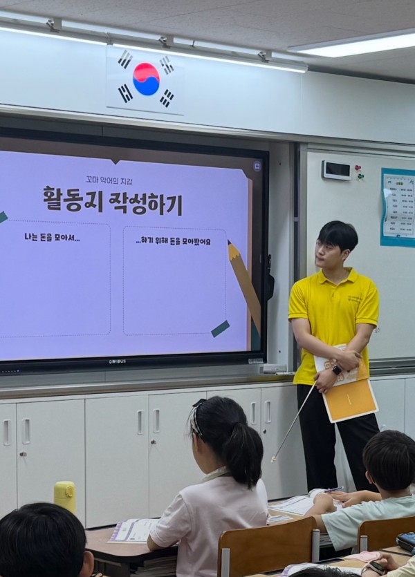1교시: 꼬마악어의 지갑 동화를 함께 읽어보며 저축의 중요성을 학습했고, 학습지를 작성하며 복습하는 시간을 가졌습니다.