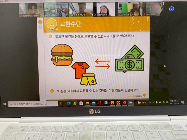 박규형 단원이 진행하였습니다. 오늘 수업은 온라인 줌으로 진행하였습니다. 따라서 교재를 사용한 활동이 어려울것으로 판단하여 더욱 많은 예시와 설명을 통해 이해를 도왔습니다. 또한 질문을 통해 학생들의 대답을 들으며 이해정도를 파악했습니다. 또한 합리적 소비와 예산, 결산에 대해 배우는 시간에는 제가 작성했던 용돈기입장을 보여주고, 간단한 활동을 통해 이해할수 있게하였습니다. 특히 나라마다 다른 화폐의 예시를 보이며, 각 화폐마다의 특징을 설명하니 학생들이 매우 흥미로워 했습니다.