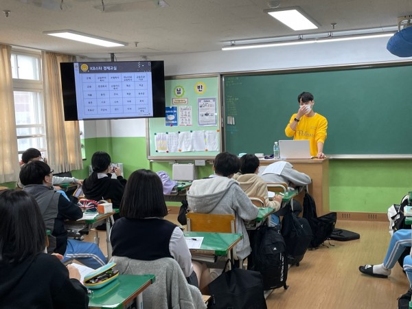 2교시는 수업 내용을 바탕으로 질의응답시간을 갖고 골든벨퀴즈를 진행하며 수업 내용을 복기했습니다. 그 후 수업 내용을 바탕으로한 빙고 게임을 진행하여 단어에 익숙해 지는 시간을 가졌고 학생들이 수업내용을 잘 학습했는지 확인해 보았습니다. 그리고 수업을 마무리 했습니다.