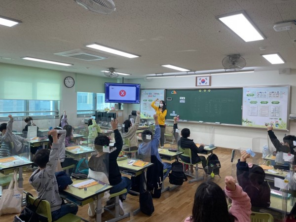 박규형 단원이 진행하였습니다. 돈과 화폐의 개념을 다룰 때에는 실생활 속 예시와 다양한 사진, 질문을 통해 학생들이 보다 쉽고, 재미있게 이해할 수 있도록 수업을 진행하였습니다. 또한 현명한 소비에 대해 배우는 시간에는 3학년 학생들에겐 어려운 단어를 학생들도 쉽게 이해할수 있도록 쉬운 단어로 풀어서 설명하였습니다.