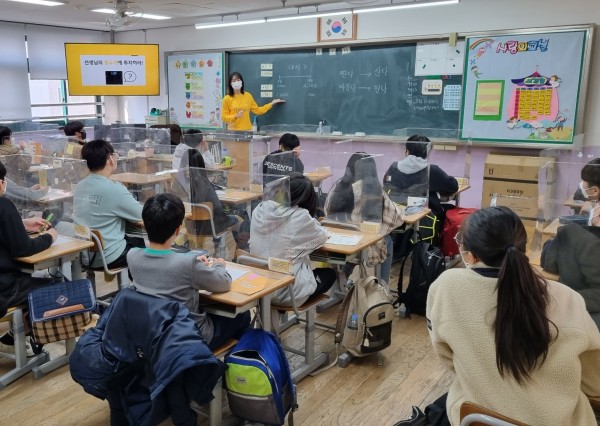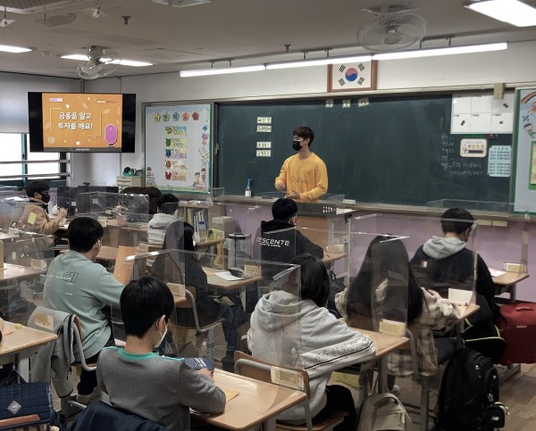 류승훈 단원이 진행하였습니다. 학생들의 경험을 통해 금융기관의 의미에 접근했습니다. 저축과 투자의 차이는 위험성과 안정성으로 설명했습니다. 수업 중간에는 속담과 명언을 이용하여 경제수업의 중요성을 알려주었습니다. 발표에는 많은 아이들이 적극적으로 참여했습니다. 간식을 여러 친구들에게 나눠주고자 가위바위보 게임을 통해 발표 학생을 정하기도 했습니다. 금융상품의 종류와 특징에 익숙하지 않은 아이들 이었지만 모든 아이들이 집중하여 수업에 임해주어 마지막 복습 퀴즈도 수월하게 진행했습니다.