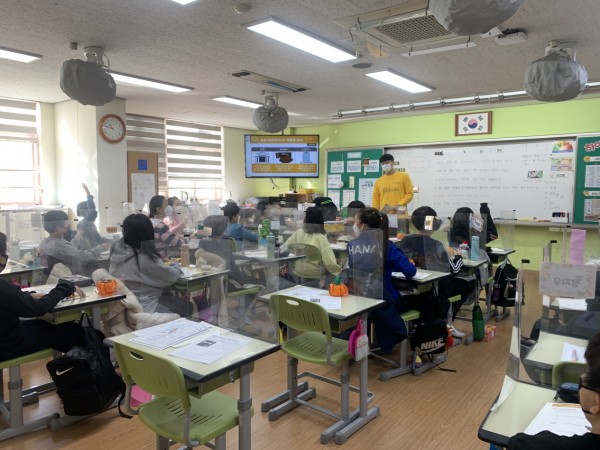 1교시에는 '금융을 알고, 투자를 해요' 교재를 이용하여 김태형 단원이 수업을 진행했습니다. 학생들에게 알맞은 눈높이의 예시를 들어 이해를 도왔습니다.