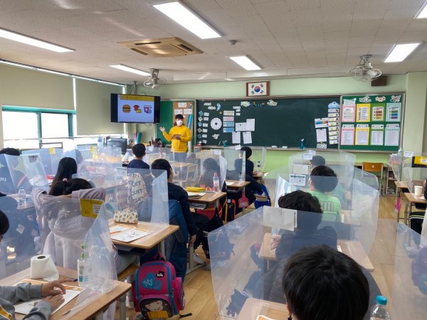박규형 단원이 진행하였습니다. 소득의 종류를 다룰 때에는 학생들의 경험등을 질문하여 쉽고, 재미있게 이해할 수 있도록 하였습니다. 또한 저축의 종류에 대해 알아보는 시간에는 ppt속 애니메이션과 판서를 활용하여 개념을 시각적으로 이해할 수 있도록 노력하였습니다. 질문에 답변을 하는 학생에게는 간식을 주었는데, 이는 학생들에게 동기부여의 역할을 해 주었고, 많은 학생들이 수업에 열정적으로 참여했습니다.