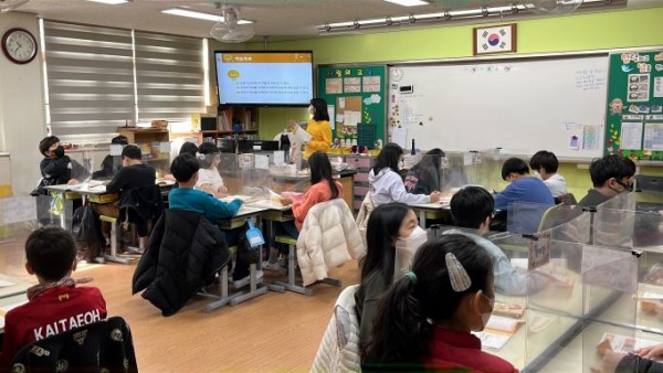 1교시에는 '금융을 알고, 투자를 해요' 교재와 PPT를 이용하여 김세민 단원이 수업을 진행했습니다. 다양한 예시와 함께 학생들의 참여를 이끄는 활동으로 수업을 진행하였습니다.
