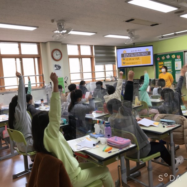 1교시 - 김세민 단원이 '내 친구 화폐, 현명한 소비' 교재와 동영상을 활용하여 돈이란 무엇인지에 대해 수업하고 화폐의 역사, 현명한 소비에 대해 학습하였습니다.