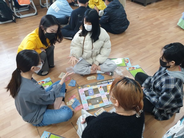 '자산을 관리해, 미래를 준비해' 교재로 소득의 종류는 무엇이 있는지, 보험이란 무엇인지 교육을 진행 한 후에 골든벨 퀴즈와 보드 게임을 통해 쉽고 즐겁게 복습을 진행하였습니다.