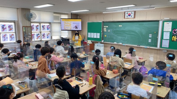 1교시 : 수업에 들어가기 전에 간단한 퀴즈를 진행하여 아이들의 집중을 도왔습니다. 진행하였습니다. 돈의 개념과 기능, 환전과 환율에 대해 설명했습니다. 환전과 환율에 대해 설명할 때 실제돈과 현재 환율을 보여주며 수업에 적극적으로 참여할 수 있도록 했습니다.