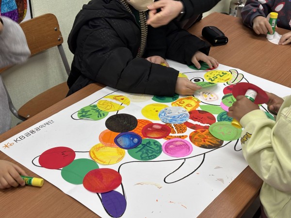 또한, 마지막으로 진행한 물고기 도안에 색종이 비늘을 붙여주는 활동에서는 하나의 작품을 함께 완성한다는 목표 덕분에