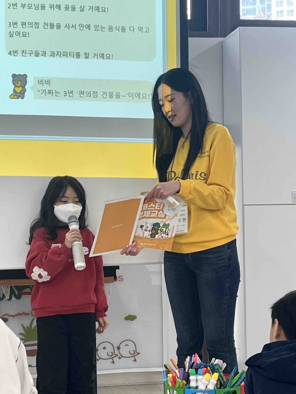 4) 교육내용 : 다섯 번째 수업으로 제가 주교사, 지연 단원이 보조교사를 맡아 참여하였습니다. 저축이 무엇인지, 저축을 하는 방법은 무엇이 있는지, 저축을 하면 좋은 점은 무엇인지에 대해 설명해주었고, 아이들의 개인적인 경험을 서로 공유하는 시간을 가졌습니다. 진진진가 활동을 통해 한 명씩 앞에 나와 무엇이 가짜로 하고 싶은 일인지에 대해 다같이 맞춰보았고, 저금통을 만들고 소원을 그리는 활동을 진행하였습니다.