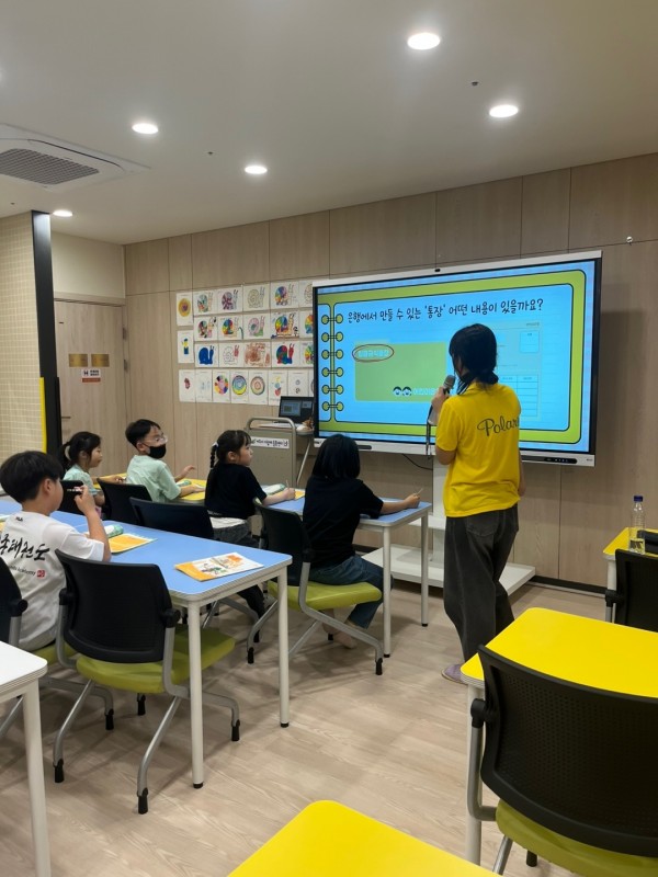 1교시(유채린) : 금융이론 수업이 진행되었습니다. 만원이라는 아이의 이야기를 활용해, 돈이 움직이고 돌아다니는 개념이 곧 금융임을 아이들에게 쉽게 설명했습니다. 만원이가 방문하는 나라가 바뀔 때마다 핵심 내용을 다시 한 번 짚어주어, 아이들이 교재 활동을 할 때 어려움을 느끼지 않도록 신경 썼습니다.