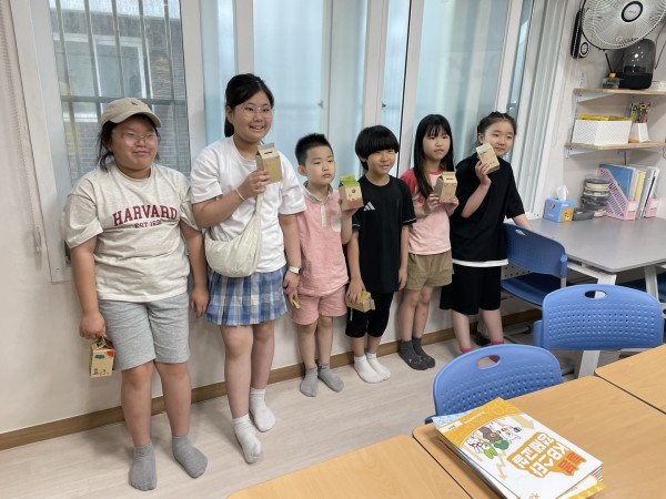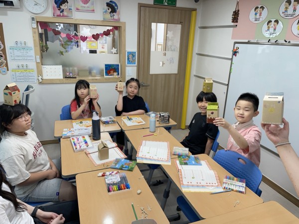 학생들이 저축의 개념을 좀 더 구체화하는 수업이었습니다. 평소에 돈을 잘 사용하지 않고 미래의 나를 위해서 돈을 아껴두는 학생들이 많아, 이번 수업도 학생들에게 큰 도움이 된 것 같습니다. 또한, 학생들이 우유팩 저금통 만들기 활동을 매우 즐거워했습니다. 나만의 저금통을 나만의 방식으로 꾸미는 것을 좋아했으며, 하나 더 만들고 싶다는 이야기도 많았습니다. 앞으로 용돈 중 일부는 이 저금통에 보관한다고 말해 기특하고 뿌듯했습니다.