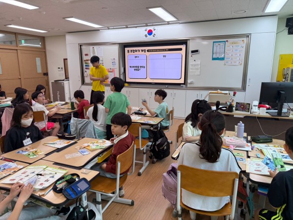 1교시(김영동) – 돈의 종류를 알아보고 그 크기를 비교하는 이론 수업을 진행하였습니다. 또한, 사진을 통해 물건들의 가격을 비교하고 돈을 사용할 때 가져야하는 자세와 생각들을 알아보았습니다.