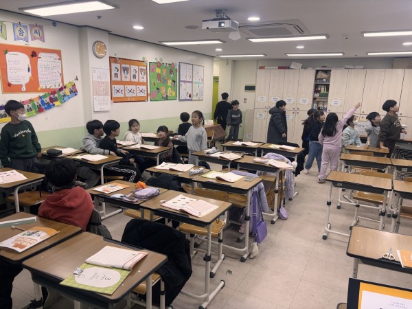 1교시(김정연) : 돈의 가치와 살 수 없는 것 학습지 16페이지 활동을 통해 각자 소중하게 생각하는 물건을 그림이나 글로 표현하고 발표하는 시간을 가졌다. 한 학생이 '엄마가 직접 만들어 주신 인형'을 가장 소중한 물건으로 꼽았는데, 이를 시장 가격으로 환산하기 어려워하는 과정을 통해 정서적 가치와 경제적 가격의 차이를 자연스럽게 학습할 수 있었다. 이어서 돈으로 살 수 있는 물건과 돈으로 살 수 없는 가치(해, 달, 생명, 행복 등)를 분류하며 토론을 진행했다. 마무리 활동으로 '경제 보물찾기'를 실시했으나, 학생들이 보물을 찾기 어려운 곳에 숨겨 18개 중 5개만 발견되는 등 게임 진행 속도를 조절하는 데 다소 어려움이 있었다.