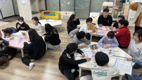 4차시 수업인 ‘단정한 마을의 단정한 사쿠리니씨’ 수업을 진행하였습니다. 동화책의 이름이 아이들이 읽기에는 어렵고 낯설어서 아이들의 이름을 넣어서 같이 읽으며 수업을 진행하였습니다. 동화 중간중간에 퀴즈를 넣어서 아이들이 집중해서 잘 읽고 이해할 수 있도록 하였습니다. 이후에는 등록증을 만들어서 아이들이 나중에 어떤 직업을 가지고 싶은지에 대해 작성을 한 후 잘 작성을 한 친구에게 도장을 찍어주며, 등록증을 완성하였습니다. 수업을 진행하면서 시간이 좀 남아, 5차시 활동으로 예정되어 있었던 ‘위시리스트 진진진가’ 게임을 진행하였습니다. 4개의 팀으로 나누어서 아이들이 돈을 모아 진짜로 하고 싶은 것 3개와 가짜로 하고 싶은 것 1개를 작성한 뒤 팀별로 무엇이 진짜고 가짜인지 맞추는 게임을 진행하였습니다. 활동이 끝나고 책과 이름표 정리, 학습 도구 정리 후 마무리 ㄹ인사를 하고 수업을 끝냈습니다.