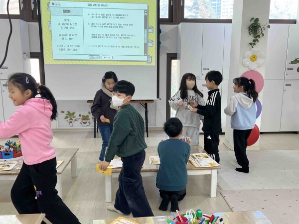 5) 소감 : 첫 수업이라 저조한 참여율을 보일까 걱정하며 시작하였는데, 생각보다 아이들의 반응이 좋아서 수업을 원활하게 진행할 수 있었습니다. 다만 아이들이 각기 다른 시간에 도착하는 바람에 중간에 들어온 아이들에게는 활동에 참여시킬 수 없어 아쉬웠습니다. 이 점 어떻게 보완할지 고민해보고 다음 2차시 수업을 가야겠다는 생각이 들었습니다. 또한 생각보다 많은 아이들이 있는 반이어서, 다음 시간부터는 아이들의 집중력이 흩어지지 않도록 더 주의해야겠다고 생각했습니다.