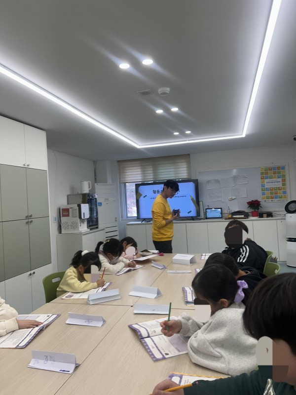 - 수업을 진행하고 있는 지역아동센터에 다니는 아이들 연령대가 다양해서 일부 고학년 아이들은 동화책 내용을 시시하게 느끼는 경우도 있었는데, 그럼에도 불구하고 아이들이 최대한 집중력을 유지하려고 노력하면서 수업에 참여해주었습니다.