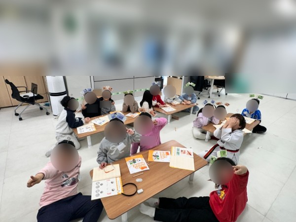 4) 교육 내용 : 1차시 화폐가 태어났어요 수업을 제가 주교사를, 민서단원이 보조교사를 맡아 진행했습니다. 화폐의 필요성에 대해 '사라진 돈' 이야기를 돌아가며 읽어 학습하고, 물물교환 게임을 통해 강화했습니다. 이때 배송된 물품 중 물물교환 카드가 누락되었지만, 민서단원이 제가 앞부분 수업을 진행하는 동안 a4용지를 잘라 간이로 제작해주어 큰 문제 없이 진행할 수 있었습니다. 또한 우리나라 화폐의 종류에 대해 알려주고 직접 완성한 화폐로 머리띠를 만들어 돈을 조합해보는 게임을 진행했습니다.