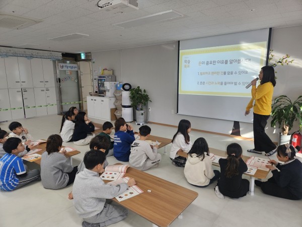 4) 교육 내용 : 2차시 수업으로 주교사는 민서단원이 맡았고, 저는 보조교사로 수업 운영을 도왔습니다. 돈으로 살 수 있는 것과 없는 것을 구분하고, 보물찾기 활동을 통해 아이들의 참여를 이끌 수 있었습니다. 그리고 빙고 게임을 하면서 학습 상태를 점검할 수 있었습니다.