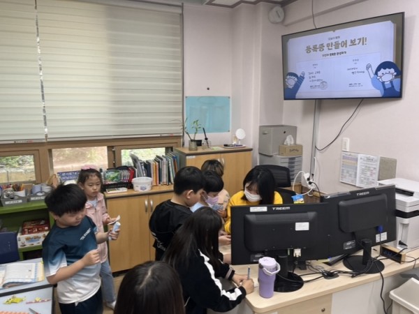 2교시(권승리): 1교시에 읽었던 동화책 내용을 바탕으로 활동지를 작성해보고 발표하는 시간을 가졌다. 직업과 직업이 아닌 것을 구분하는 가장 큰 특징 중 하나는 '돈을 벌 수 있는지의 여부'임을 교육했다. 다음으로, 등록증 만들어보기 활동을 통해 실제로 직업과 직업이 아닌 것을 구분하는 활동을 진행했다.