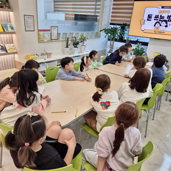 아이들에게 돈을 쓸 때는 꼭 필요한 것인지, 오래 쓸 수 있는지, 나의 예산에 적합한지, 정말 갖고 싶은지 등의 4가지를 기억하라고 가르쳐주었습니다. 마지막으로는 아이들과 종이 돈 모형으로 돈 조합하기 게임을 함께 하였습니다.