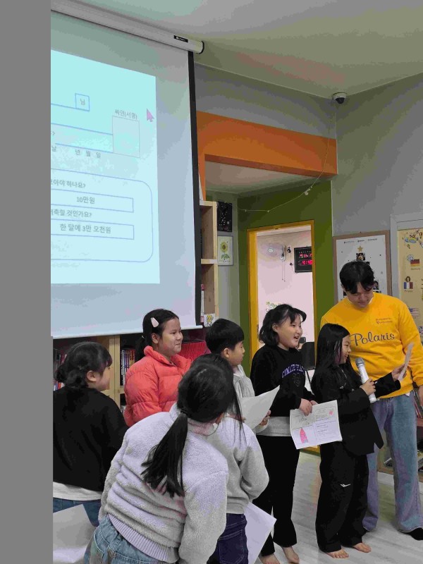 2교시에는 아이들과 함께 퀴즈를 풀어보며 1차시부터 6차시 까지 배운것들을 다시 한번 알아보는 시간을 가졌습니다. 넌센스퀴즈를 비롯하여 다양한 내용의 퀴즈를 막힘없이 풀어내는 아이들의 모습을 보면서 보람을 느꼈습니다. 남은 2회차 수업도 열심히 준비하여 아이들이 올바른 경제습관을 가질 수 있도록 노력할 것 입니다.