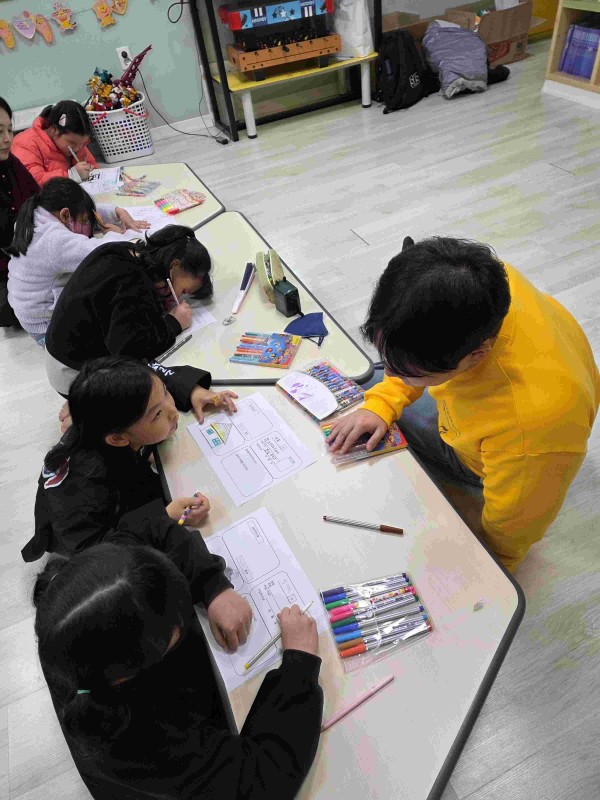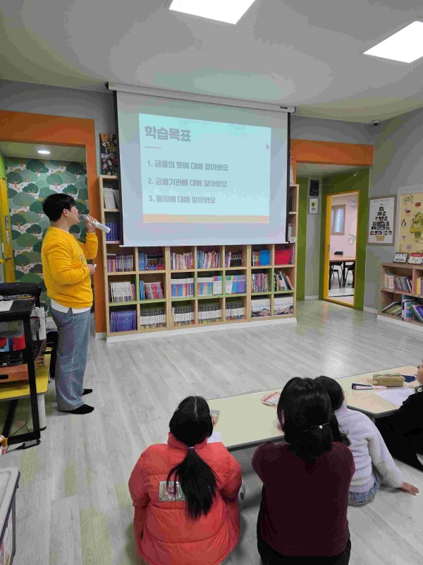 1교시에는 아이들에게 은행은 송금, 환전, 대출, 예금 등 다양한 업무를 담당하고 있다는 것을 알려주고 농협, 수협, 새마을금고등 다양한 종류의 금융 기관이 있다는 것을 알려주었습니다. 아이들이 스스로 통장을 만들어 보면서 계좌번호, 서명, 예금종류 등 통장에 적혀있는 내용에 대해 학습해보는 시간을 가졌습니다.