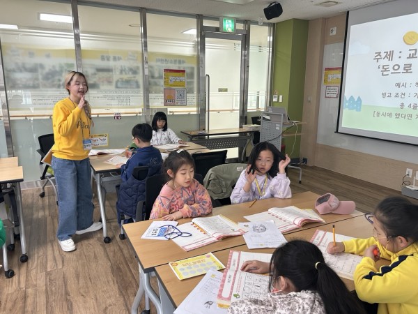 -학생들과 첫 수업 시간이라 간단한 자기소개로 수업을 시작했습니다. 청소년센터 특성상 학생들이 서로 친한 상태가 아니기 때문에 모둠별로 서로 얼굴을 그려주는 활동을 하여 아이들끼리 유대감을 높일 수 있도록 프로그램을 구성해보았습니다. 교재 속 다양한 가치/사물 중 돈으로 살 수 있는 것과 없는 것을 구별하고, 해당 물건들을 구해선 어떤 것들을 할수 있는지 배웠습니다. 다양한 일을 통해 돈을 벌면, 원하는 물건을 살 수 있다는 사실과, 그렇게 번 돈은 현명하게 사용해야 함을 강의했습니다.