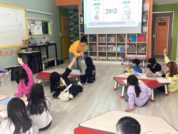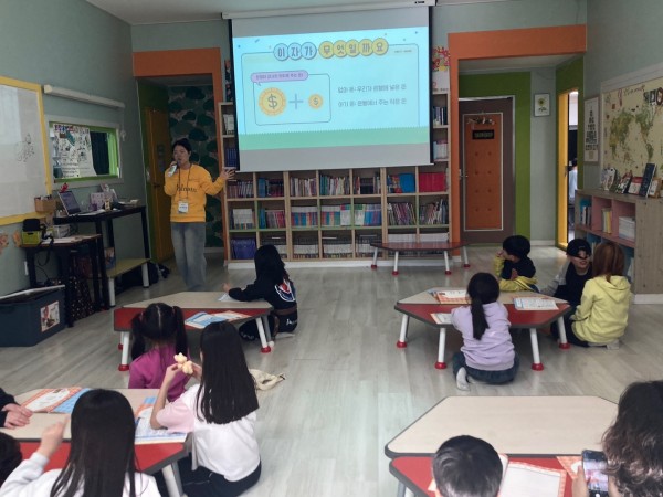 저축이 무엇인지 설명한 후, 학생들이 저축과 관련된 경험을 나누고 그 장단점에 대해 발표하도록 하는 시간을 가져보았습니다. 이어서 이자의 개념을 쉽게 이해할 수 있도록 엄마 돈과 아기 돈을 예로 들어 설명하였고, 추가적인 예시를 통해 학생들이 더 잘 이해할 수 있도록 도왔습니다. 더불어 선생님들은 저축을 통해 자신이 좋아하는 관심 분야에 돈을 사용할 수 있었다며, 경험을 공유하여 저축이 가치 있는 일임을 알려주었습니다.