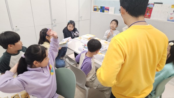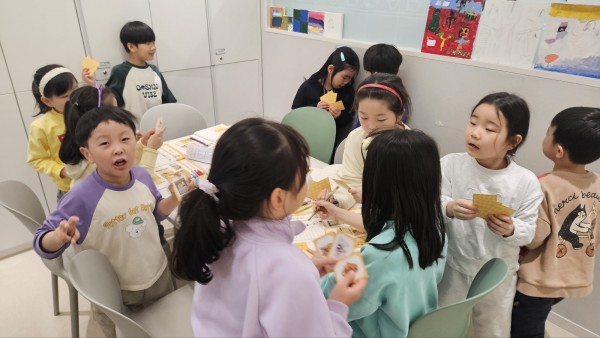 - 교사를 소개하고 나서 아이들이 각자 이름표를 만들고 자기소개를 했습니다.