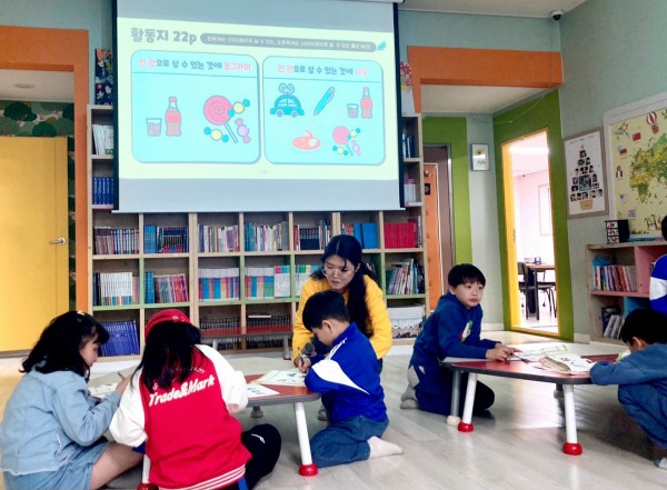 활동지를 통해 같은 물건이라도 가격이 다르다는 것을 배우고, 돈의 크기를 차근차근 가르쳐주며 비교하는 활동을 진행했습니다. 돈을 벌기 위해서는 많은 시간과 노력이 필요하며, 똑똑한 소비를 위해서는 4가지 생각을 바탕으로 소비해야함을 배우는 시간을 가져보았습니다.