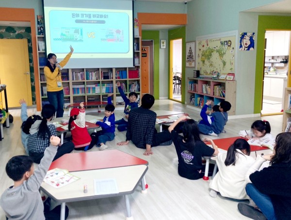 설명 때 돈의 크기에 대해 배운것을 토대로 가짜지폐를 가지고 직접 돈을 조합해보는 활동을 진행하였습니다. 활동은 팀별로 구성하여 친구들이 서로 얘기하고 돈을 조합하며 협동하는 시간을 가졌습니다.